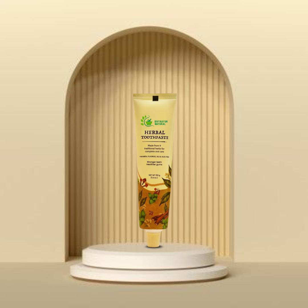 Herbal Toothpaste is an Ayurvedic oral care formula enriched with Neem, Babool, and Clove extracts that help strengthen teeth, maintain gum health, and provide long-lasting fresh breath — naturally and safely.