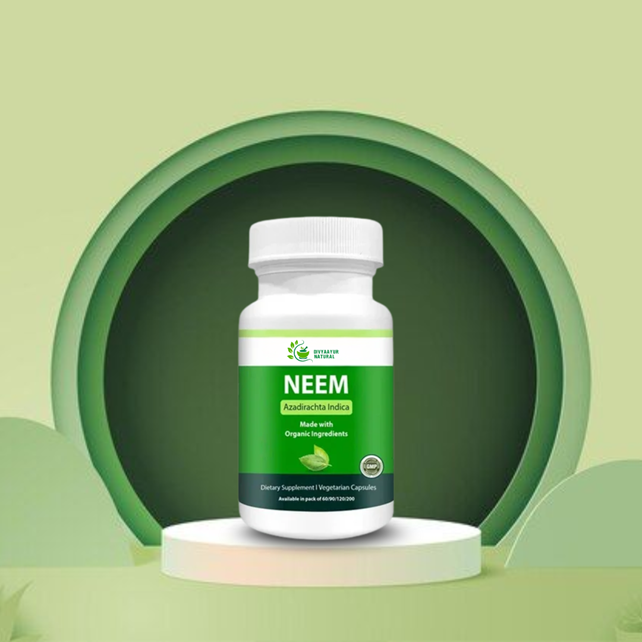 Neem Capsules are prepared from high-quality neem leaf extract, renowned in Ayurveda for its powerful antibacterial and blood-purifying properties. These capsules work internally to detoxify the blood, fight skin infections, and improve skin clarity. Regular use of Neem Capsules helps reduce acne, prevent skin diseases, and promote healthy, radiant skin. Neem’s natural antibacterial properties make it an excellent remedy for maintaining skin health and preventing skin problems.